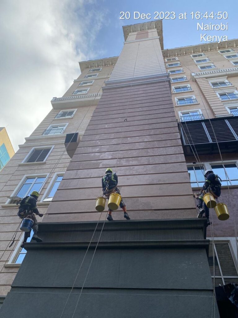 Rope access for façade rectification and renovation to eliminate the use of scaffolding and BMU systems